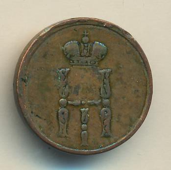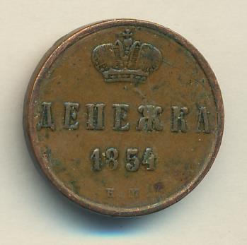 Лицевая сторона — вензель Николая I, оборотная — обозначение номинала (денежка) и дата. Нормативный вес — 2,56 грамма, гурт гладкий.
