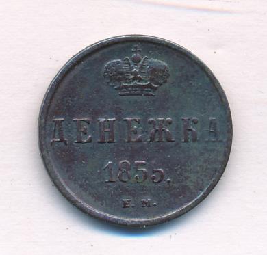 Лицевая сторона — вензель Николая I, оборотная — обозначение номинала (денежка) и дата. Нормативный вес — 2,56 грамма, гурт гладкий.