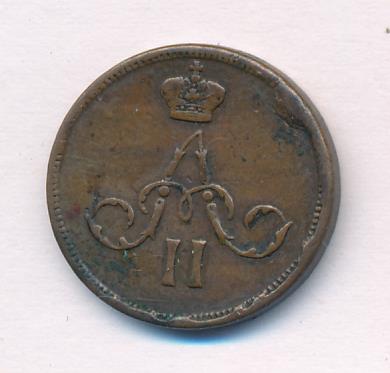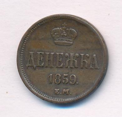 Лицевая сторона — вензель Николая I, оборотная — обозначение номинала (денежка) и дата. Нормативный вес — 2,56 грамма, гурт гладкий.