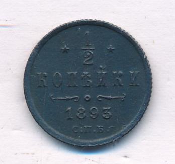 Лицевая сторона — вензель Александра II в венке из лавровой и дубовой ветвей; оборотная — обозначение номинала (1/2 копейки) и дата. Нормативный вес — 1,64 грамма, гурт рубчатый.