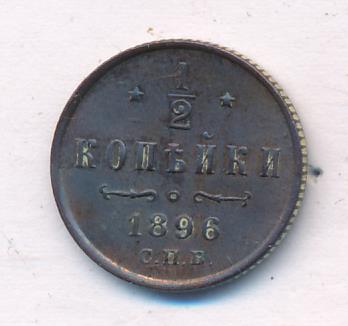 Лицевая сторона — вензель Александра II в венке из лавровой и дубовой ветвей; оборотная — обозначение номинала (1/2 копейки) и дата. Нормативный вес — 1,64 грамма, гурт рубчатый.
