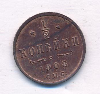 Лицевая сторона — вензель Александра II в венке из лавровой и дубовой ветвей; оборотная — обозначение номинала (1/2 копейки) и дата. Нормативный вес — 1,64 грамма, гурт рубчатый.