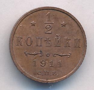Лицевая сторона — вензель Александра II в венке из лавровой и дубовой ветвей; оборотная — обозначение номинала (1/2 копейки) и дата. Нормативный вес — 1,64 грамма, гурт рубчатый.