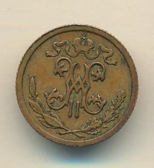 Лицевая сторона — вензель Александра II в венке из лавровой и дубовой ветвей; оборотная — обозначение номинала (1/2 копейки) и дата. Нормативный вес — 1,64 грамма, гурт рубчатый.