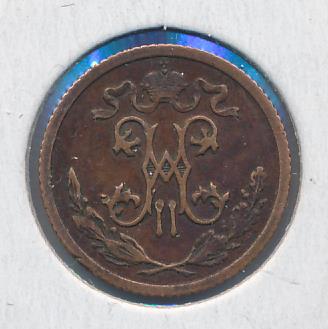 Лицевая сторона — вензель Александра II в венке из лавровой и дубовой ветвей; оборотная — обозначение номинала (1/2 копейки) и дата. Нормативный вес — 1,64 грамма, гурт рубчатый.