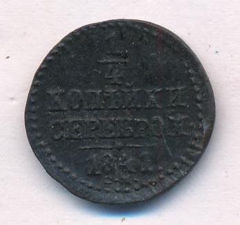 Лицевая сторона — вензель Николая I в бусовом ободке, оборотная — надпись «1/4 КОПЕЙКИ СЕРЕБРОМ» и дата. Нормативный вес — 2,56 грамма, гурт гладкий.