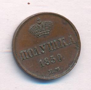 Лицевая сторона — вензель Николая I, оборотная — обозначение номинала (полушка) и дата. Нормативный вес — 1,28 грамма, гурт гладкий.