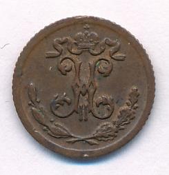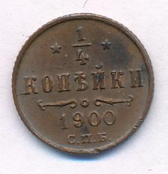 Лицевая сторона — вензель Александра II в венке из лавровой и дубовой ветвей; оборотная — обозначение номинала (1/4 копейки) и дата. Нормативный вес — 0,82 грамма, гурт рубчатый.