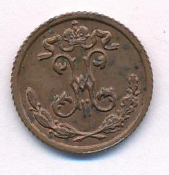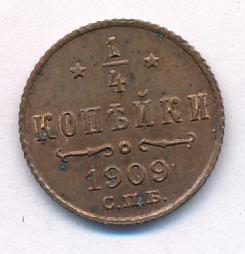Лицевая сторона — вензель Александра II в венке из лавровой и дубовой ветвей; оборотная — обозначение номинала (1/4 копейки) и дата. Нормативный вес — 0,82 грамма, гурт рубчатый.