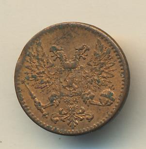 Лицевая сторона — вензель Александра II, оборотная — номинал (1 PENNIA) и дата. Нормативный вес — 1,28 грамма, гурт гладкий.