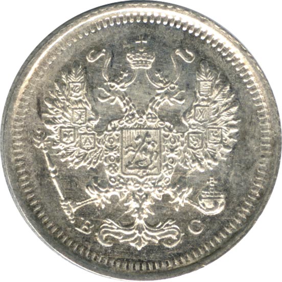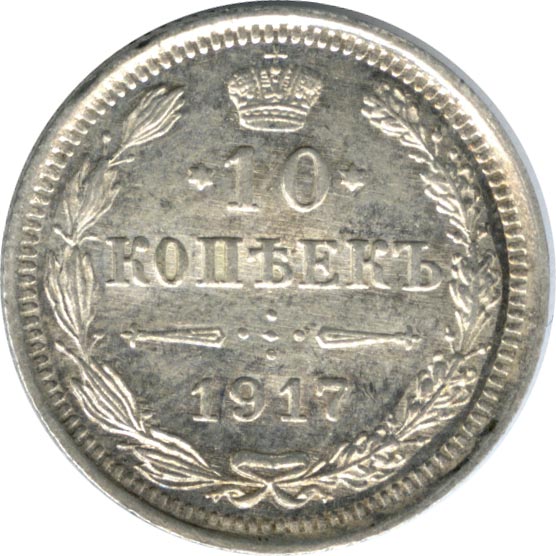 Лицевая сторона — гербовый орел, оборотная —обозначение номинала (10 копеекъ), окруженное венком из лавровой и дубовой ветвей и дата.