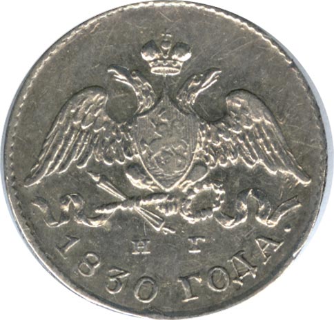 Указом от 1 июля 1826 года Николай I сохраняет вес и пробу золотых и серебряных монет, но приводит к единообразию их внешний вид. На серебряные монеты, вслед за золотыми, помещается новый герб - так называемый «масонский» орел с опущенными крыльями, на груди которого московский герб, в лапах факелы, лавровый венок, ликторский пучок и лента, без корон на головах. См. cтатью «Масонский орел» на сайте «Конрос».