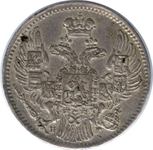 В январе 1830 года Николай I дает министру финансов Е. Ф. Канкрину устное указание «о сделании на золотых и серебряных монетах орла как на платиновых». На новом гербе крылья орла подняты, на них размещены шесть местных гербов — казанский, астраханский, сибирский, польский, херсонесский и финляндский. На груди орла — московский герб, на головах — короны. Выделяют четыре типа орла.
