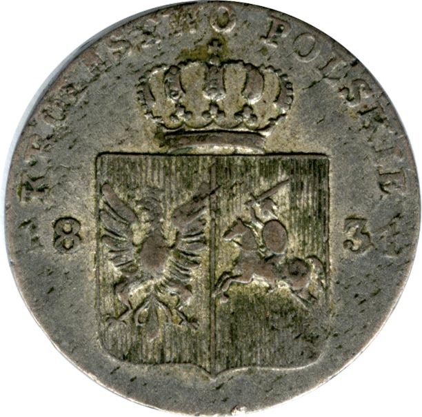 В ноябре 1830 года в Польше началось первое из восстаний, имевших целью выход из состава Российской империи. 9 декабря постановлением Временного правления монетный двор передается Польскому банку. В период до октября 1831 года, когда восстание было подавлено, Варшавский двор чеканит монеты с измененной лицевой стороной — соединенным гербом царства Польского и Великого княжества Литовского и надписью: «Королевство Польское». 21 ноября 1831 года следует указание о мерах по изъятию начеканенных во время «мятежа» монет, а с 1 июля 1838 года их обращение запрещается.