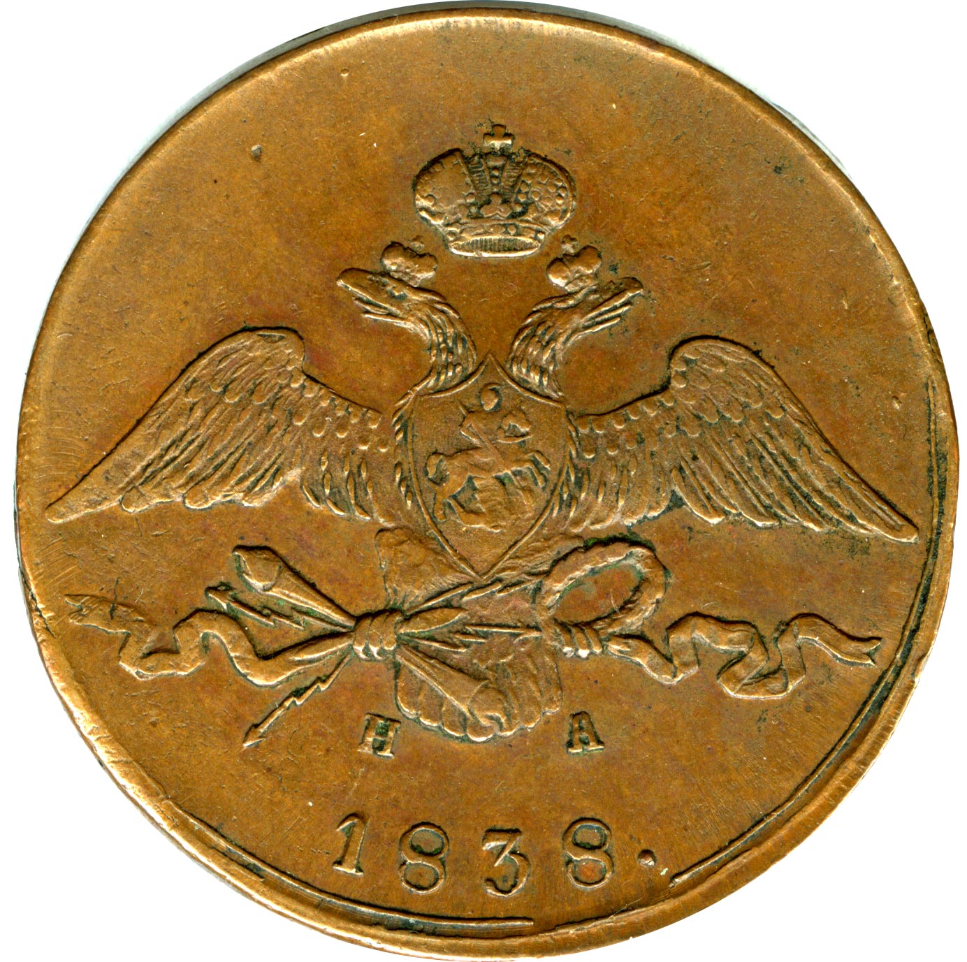 На новой серии медных монет оформление герба как на золотых (с 1817 года) и серебряных (с 1826 года), хотя еще в 1830 году было указано сделать для них орла как на платиновых. Таким образом, вышедшие в 1832 году в обращение новые медные монеты изначально имеют устаревшее оформление, а золотые и серебряные с этого же 1832 года — новое.