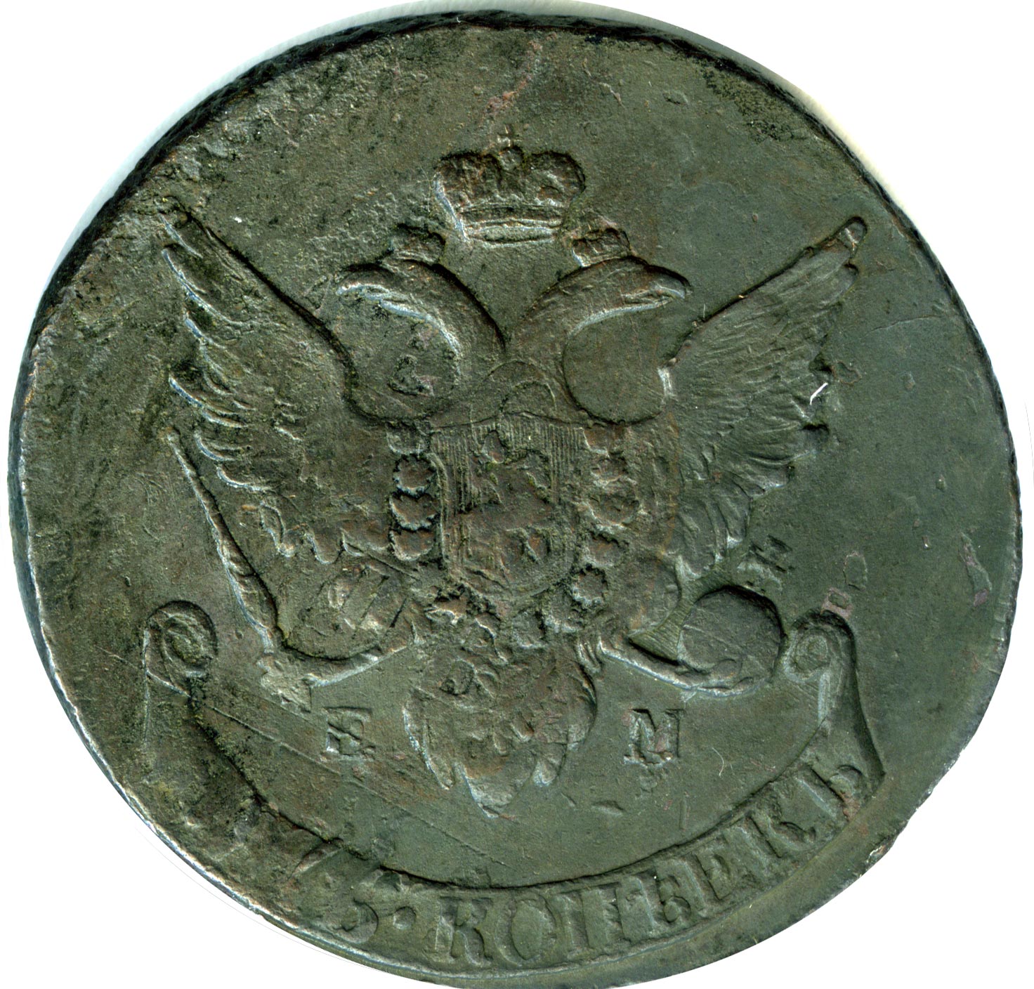 Указом от 27 января 1763 года Екатерина II прекращает перечеканку тяжелых монет 16-рублевой стопы в легкие (32-рублевой стопы) и начинает обратный процесс. Медные монеты приобретают тот же вид, что они имели при Елизавете, меняется лишь вензель императрицы.