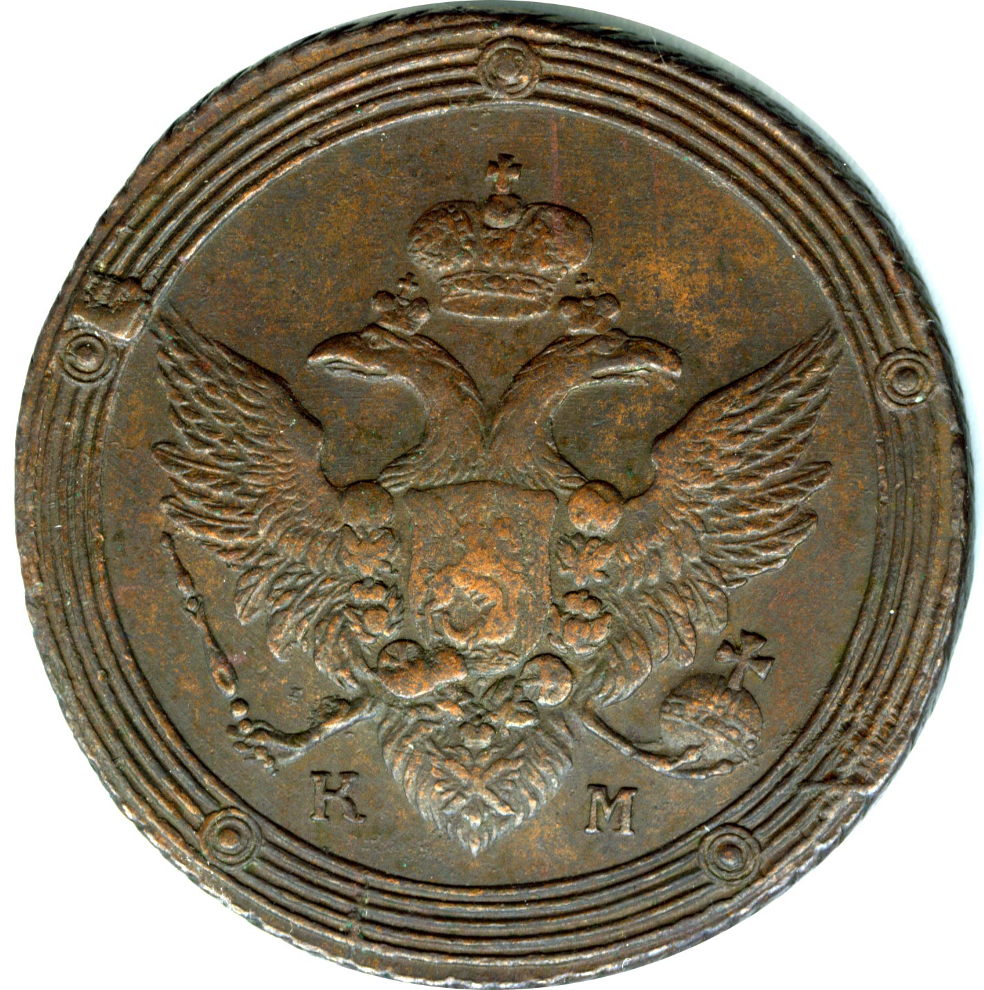 В первое десятилетие правления Александра I медным монетам возвращается принятый при Екатерине II ряд номиналов. Все они оформлены единообразно: на лицевой стороне — двуглавый орел, на оборотной — номинал и дата. Обе стороны обрамлены концентрическими линейными кружками, номинал дополнительно продублирован крупными счетными точками.