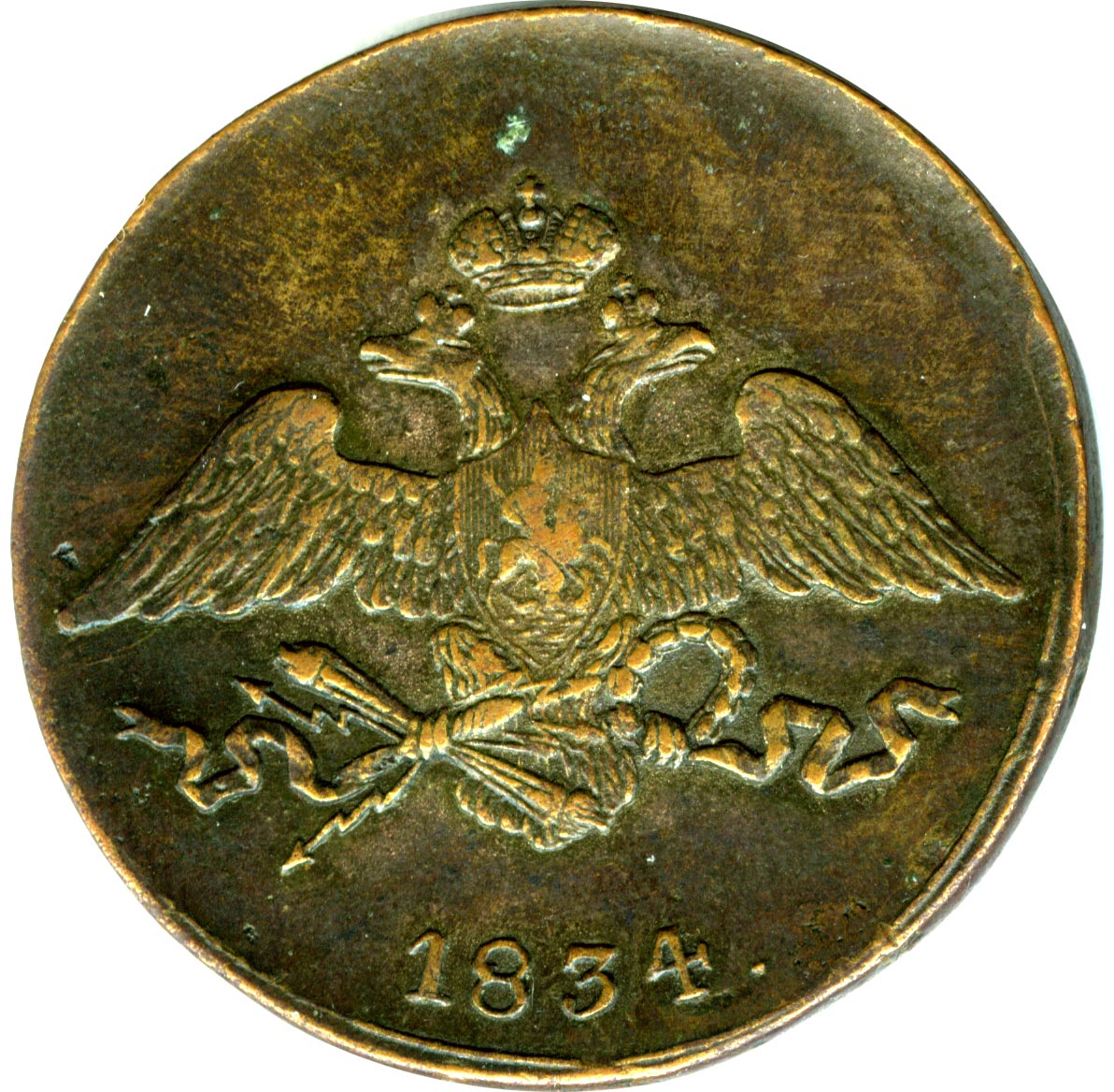 На новой серии медных монет оформление герба как на золотых (с 1817 года) и серебряных (с 1826 года), хотя еще в 1830 году было указано сделать для них орла как на платиновых. Таким образом, вышедшие в 1832 году в обращение новые медные монеты изначально имеют устаревшее оформление, а золотые и серебряные с этого же 1832 года — новое.
