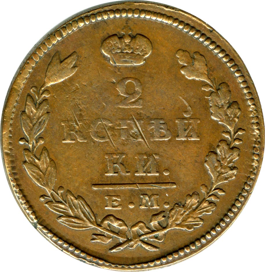 Лицевая сторона — двуглавый орел и дата; оборотная - номинал (2 копейки) в венке из лавровой и дубовой ветвей. Нормативный вес — 13,65 грамма, гурт — гладкий или шнур.