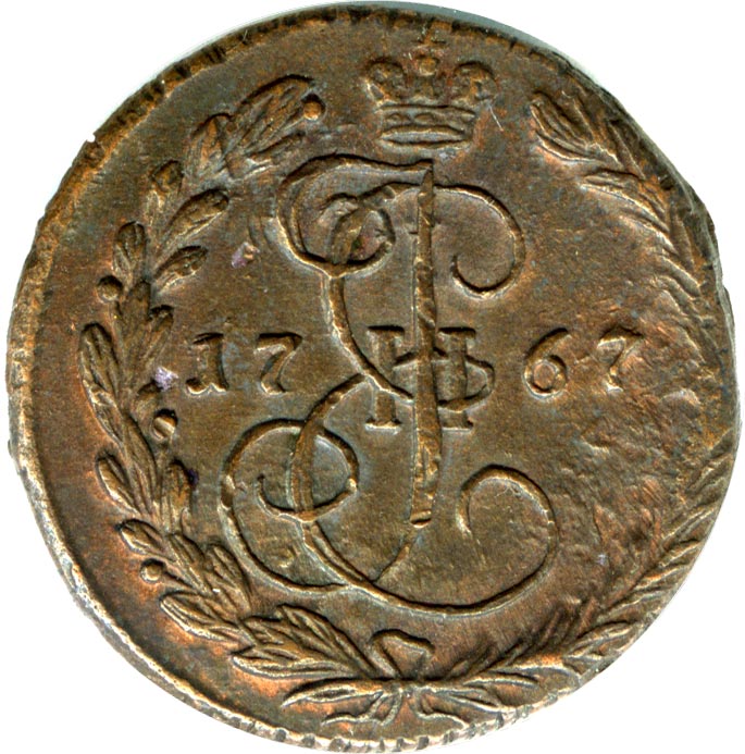 Указом от 27 января 1763 года Екатерина II прекращает перечеканку тяжелых монет 16-рублевой стопы в легкие (32-рублевой стопы) и начинает обратный процесс. Медные монеты приобретают тот же вид, что они имели при Елизавете, меняется лишь вензель императрицы.