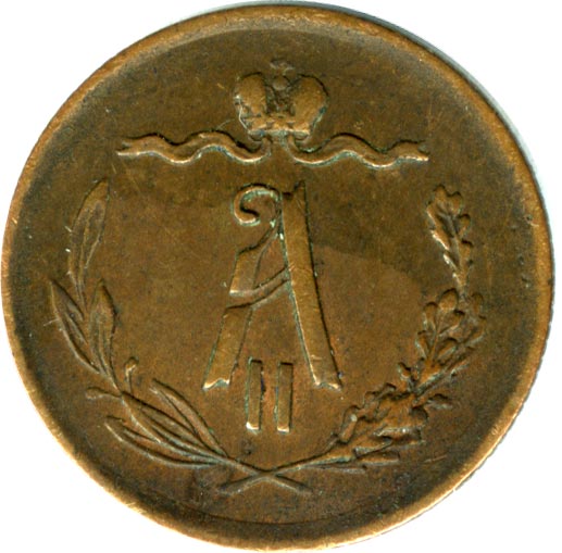 Указом от 21 марта 1867 года Александр II утверждает 50-рублевую стопу для медных монет. Новые монеты получают усложненное оформление, дополнительным отличием от прежних выпусков служит рубчатый гурт (чеканка ведется без предварительного гурчения кружков в неразъемном рубчатом кольце).