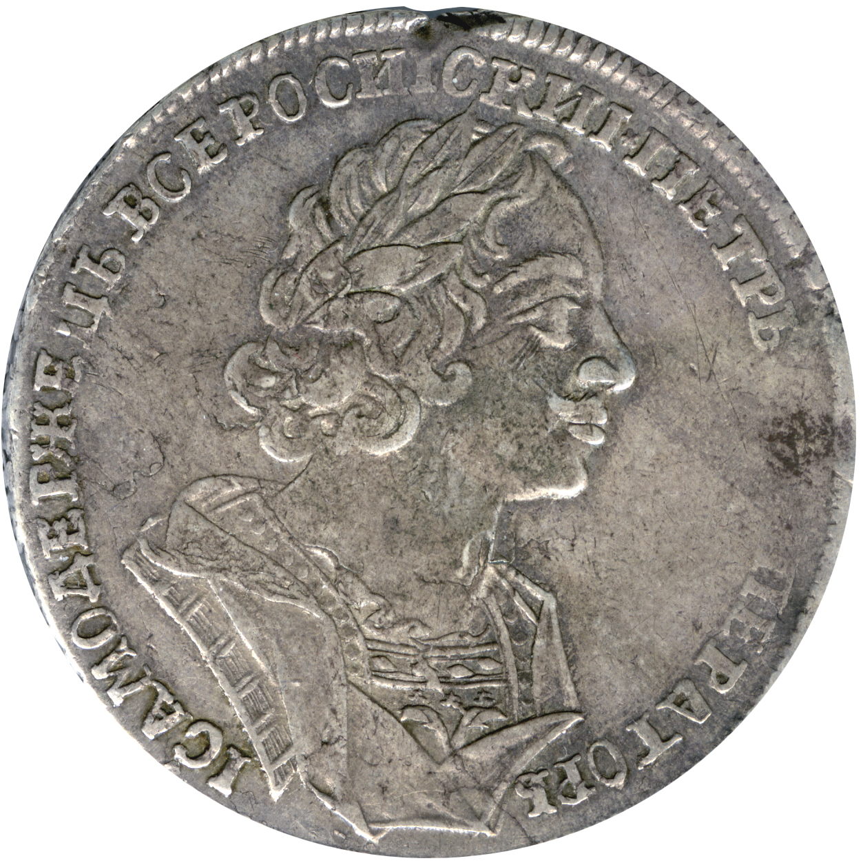 Легенда лицевой стороны - «Петр А (Алексеевич) Император и Самодержец Всероссийский», оборотной - «Монета новая цена рубль» и дата арабскими цифрами. Проба монет — 729, вес 28, 44 грамма.