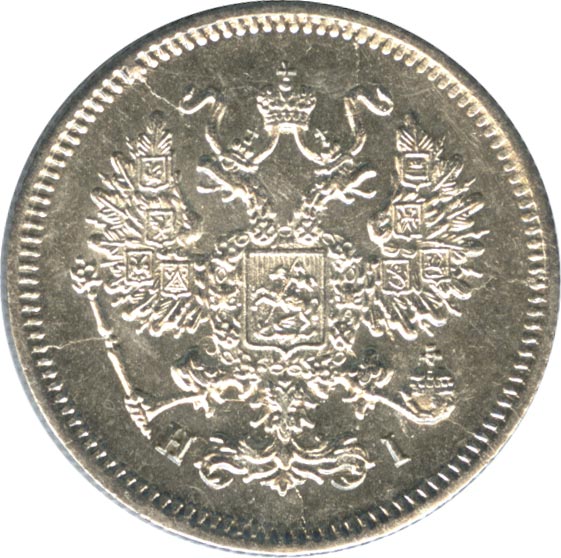 Лицевая сторона — гербовый орел, оборотная —обозначение номинала (10 копеекъ), окруженное венком из лавровой и дубовой ветвей и дата.