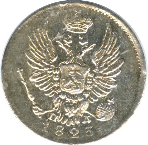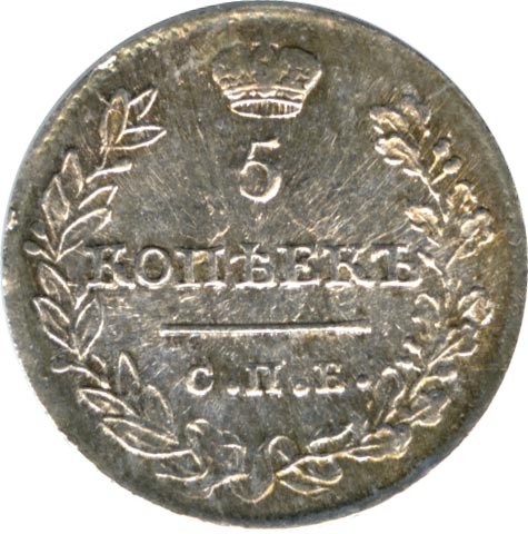 Лицевая сторона - двуглавый орел и дата, оборотная — обозначение номинала (5 копеекъ) в венке из лавровой и дубовой ветвей. Проба до 1813 года — 750, нормативный вес — 1,2 грамма; после 1813 года — проба 868, нормативный вес — 1,04 грамма.