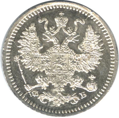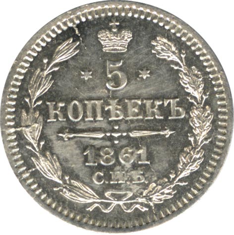 Лицевая сторона — гербовый орел, оборотная —обозначение номинала (5 копеекъ), окруженное венком из лавровой и дубовой ветвей и дата.