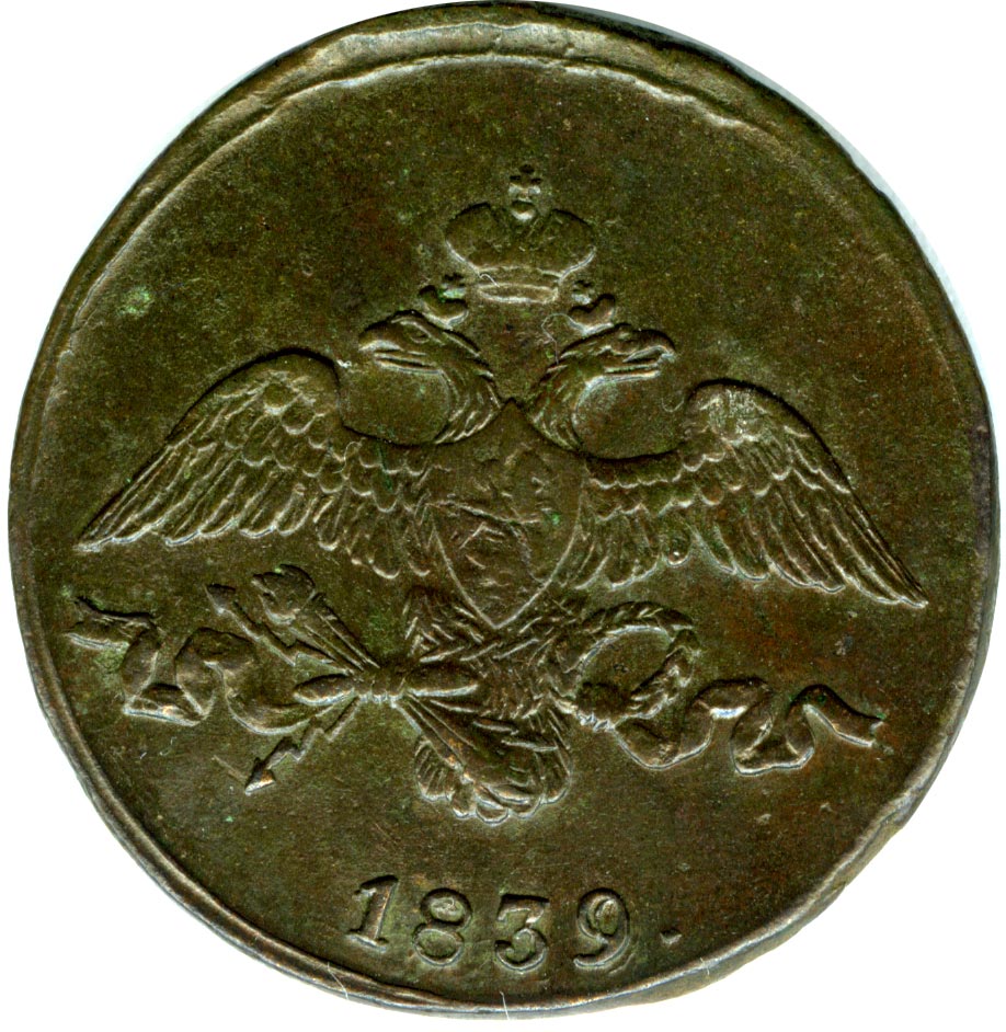 На новой серии медных монет оформление герба как на золотых (с 1817 года) и серебряных (с 1826 года), хотя еще в 1830 году было указано сделать для них орла как на платиновых. Таким образом, вышедшие в 1832 году в обращение новые медные монеты изначально имеют устаревшее оформление, а золотые и серебряные с этого же 1832 года — новое.