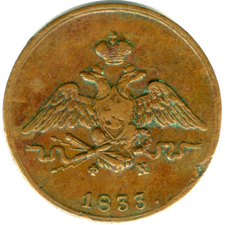 На новой серии медных монет оформление герба как на золотых (с 1817 года) и серебряных (с 1826 года), хотя еще в 1830 году было указано сделать для них орла как на платиновых. Таким образом, вышедшие в 1832 году в обращение новые медные монеты изначально имеют устаревшее оформление, а золотые и серебряные с этого же 1832 года — новое.