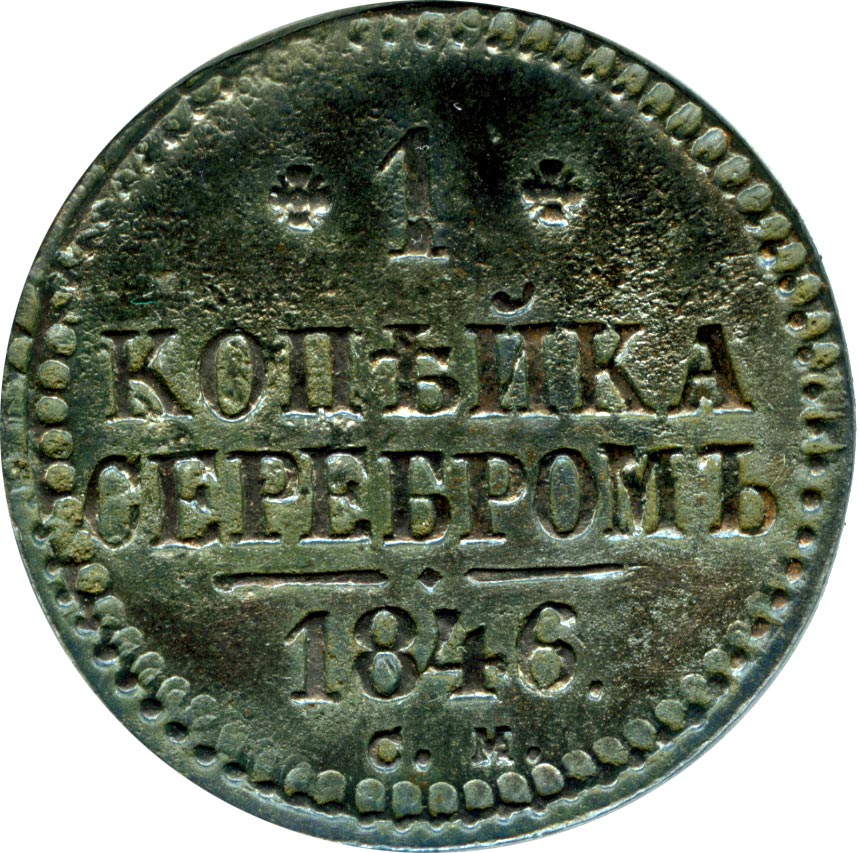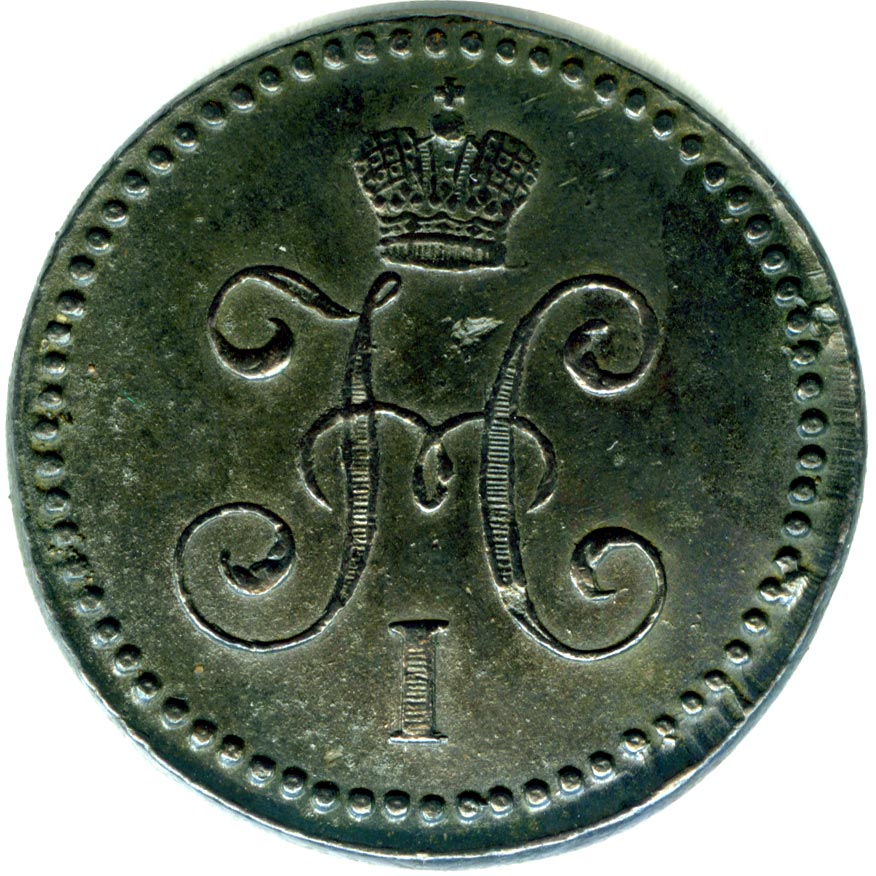 Лицевая сторона — вензель Николая I в бусовом ободке, оборотная — надпись «1 КОПЕЙКА СЕРЕБРОМ» и дата. Нормативный вес — 10,24 грамма, гурт гладкий.