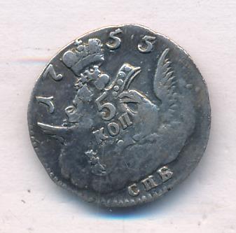 Для сокращения разрыва между копеечным номиналом и гривенником указом Сената от 25 мая 1755 года в обращение вводятся пятаки той же 77/96 пробы и стопы в 16 рублей 94 копейки их фунта, которая была установлена для гривенников указом от 22 марта 1746 года.