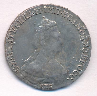 Выделяют два типа - «шея длиннее» и «шея короче». Лицевая сторона — портрет императрицы и надпись «Б М ЕКАТЕРИНА II IМП И САМОД ВСЕРОСС», оборотная — двуглавый орел, обозначение номинала цифрой и счетными точками и дата.