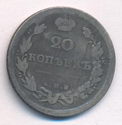 Лицевая сторона - двуглавый орел и дата, оборотная — обозначение номинала (20 копеекъ) в венке из лавровой и дубовой ветвей. Проба до 1813 года — 750, нормативный вес — 4,80 грамма; после 1813 года — проба 868, нормативный вес — 4,15 грамма.