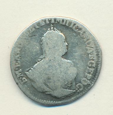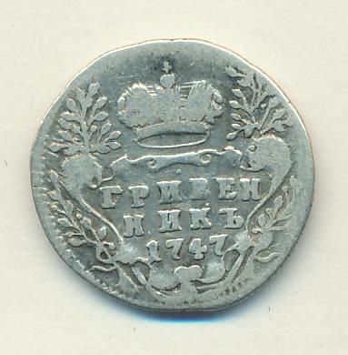 Лицевая сторона — портрет и надпись «Б М Елисаветъ I IMP I САМОД ВСЕРОС», оборотная — обозначение номинала (гривенникъ) и дата. Проба — 750 (с 1746 года - 802), нормативный вес — 2,59 грамма (с 1755 года — 2,42). Гурт — шнур.