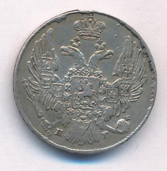 В январе 1830 года Николай I дает министру финансов Е. Ф. Канкрину устное указание «о сделании на золотых и серебряных монетах орла как на платиновых». На новом гербе крылья орла подняты, на них размещены шесть местных гербов — казанский, астраханский, сибирский, польский, херсонесский и финляндский. На груди орла — московский герб, на головах — короны. Выделяют шесть типов орла.