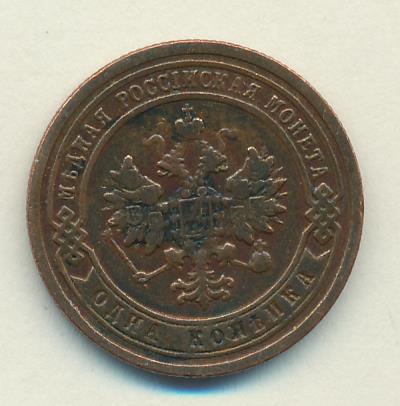 Лицевая сторона — двуглавый орел, надпись МЕДНАЯ РОССIЙСКАЯ МОНЕТА и обозначение номинала (одна копейка); оборотная — обозначение номинала (1 копейка) в бусовом ободке и дата. Нормативный вес — 3,28 грамма, гурт рубчатый.
