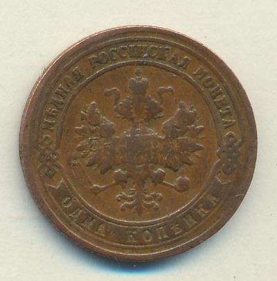 Лицевая сторона — двуглавый орел, надпись МЕДНАЯ РОССIЙСКАЯ МОНЕТА и обозначение номинала (одна копейка); оборотная — обозначение номинала (1 копейка) в бусовом ободке и дата. Нормативный вес — 3,28 грамма, гурт рубчатый.
