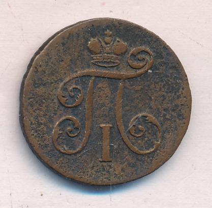 Лицевая сторона — вензель Павла I под короной, оборотная — номинал (1 деньга) и дата. Нормативный вес — 5,12 грамма, гурт — шнур.