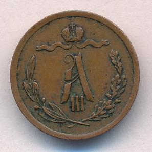 Указом от 21 марта 1867 года Александр II утверждает 50-рублевую стопу для медных монет. Новые монеты получают усложненное оформление, дополнительным отличием от прежних выпусков служит рубчатый гурт (чеканка ведется без предварительного гурчения кружков в неразъемном рубчатом кольце).