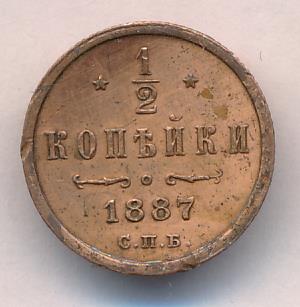 Лицевая сторона — вензель Александра II в венке из лавровой и дубовой ветвей; оборотная — обозначение номинала (1/2 копейки) и дата. Нормативный вес — 1,64 грамма, гурт рубчатый.
