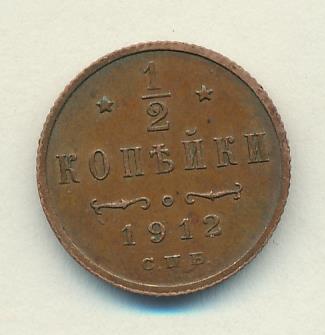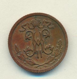 Лицевая сторона — вензель Александра II в венке из лавровой и дубовой ветвей; оборотная — обозначение номинала (1/2 копейки) и дата. Нормативный вес — 1,64 грамма, гурт рубчатый.