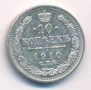 Лицевая сторона — гербовый орел, оборотная —обозначение номинала (10 копеекъ), окруженное венком из лавровой и дубовой ветвей и дата.