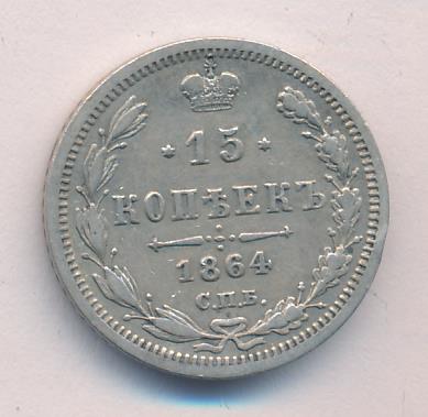 Лицевая сторона — гербовый орел, оборотная —обозначение номинала (15 копеекъ), окруженное венком из лавровой и дубовой ветвей и дата.