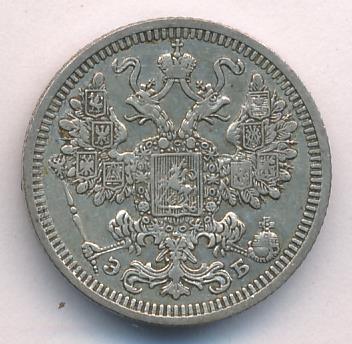 Лицевая сторона — гербовый орел, оборотная —обозначение номинала (15 копеекъ), окруженное венком из лавровой и дубовой ветвей и дата.