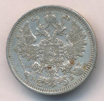 Лицевая сторона — гербовый орел, оборотная —обозначение номинала (15 копеекъ), окруженное венком из лавровой и дубовой ветвей и дата.