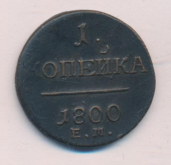 Лицевая сторона — вензель Павла I под короной, оборотная — номинал (1 копейка) и дата. Нормативный вес — 10,24 грамма, гурт — шнур.