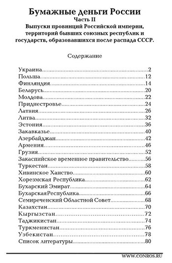 Особенности: Каталог включает выпуски провинций Российской империи, выпуски на территории бывших Союзных республик и государств, образовавшихся после распада СССР. Содержит реальные рыночные цены. А5 формат. Печать офсетная, ч/б, мягкий переплет. 84 страницы