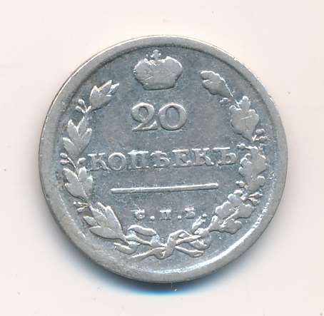 Лицевая сторона - двуглавый орел и дата, оборотная — обозначение номинала (20 копеекъ) в венке из лавровой и дубовой ветвей. Проба до 1813 года — 750, нормативный вес — 4,80 грамма; после 1813 года — проба 868, нормативный вес — 4,15 грамма.